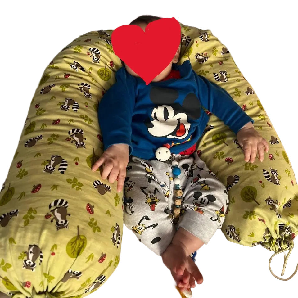 diventa poi utile nel periodo post parto come appoggio, durante l'allattamento e durante i riposini del piccolino, utile anche come riduttore per culle o lettini e come sostegno per il tummy time ;